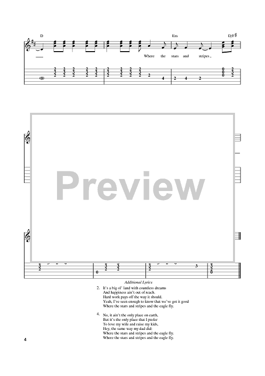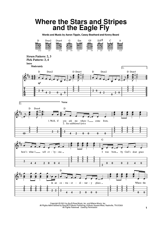 Digital Sheet Music for Where The Stars And Stripes And The Eagle Fly by Aaron Tippin, Kenny Beard, Casey Beathard scored for Easy Guitar Tab; id:370782