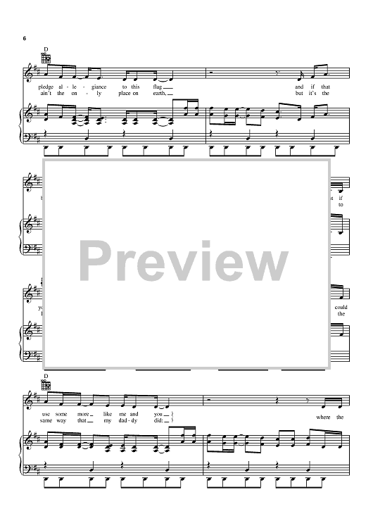 Digital Sheet Music for Where The Stars And Stripes And The Eagle Fly by Aaron Tippin, Kenny Beard, Casey Beathard scored for Piano/Vocal/Chords; id:391472