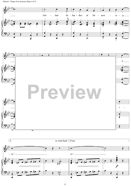 Digital Sheet Music for Wings Over America by John W. Bratton, Leo Edwards, Ian Hackerman scored for Piano/Vocal; id:423152