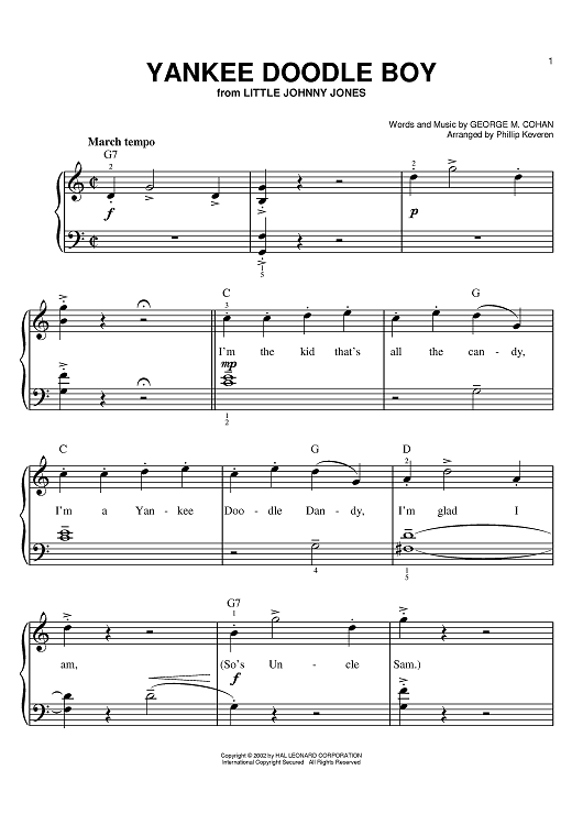 Digital Sheet Music for Yankee Doodle Boy by George M Cohan, Phillip Keveren scored for Easy Piano; id:382231