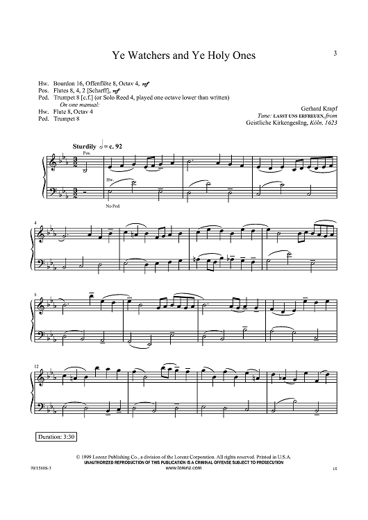 Digital Sheet Music for Ye Watchers and Ye Holy Ones by Gerhard Krapf, Geistliche Kirchengesange scored for Organ Solo; id:434870