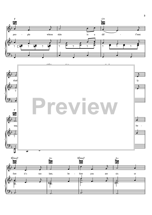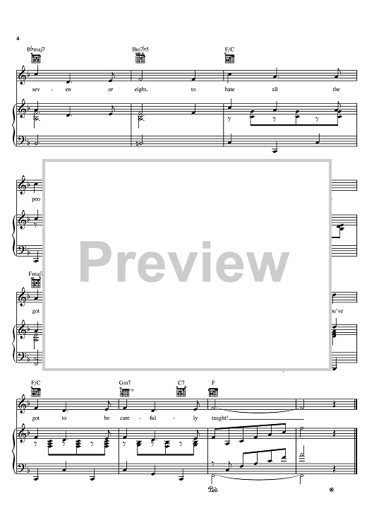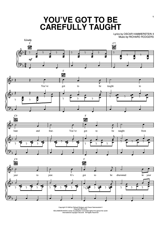 Digital Sheet Music for You've Got To Be Carefully Taught by Richard Rodgers, Oscar Hammerstein II scored for Piano/Vocal/Chords; id:368161
