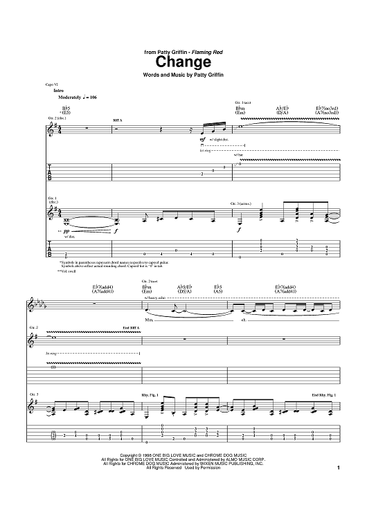 Digital Sheet Music for Change by Patty Griffin scored for Guitar Tab; id:371643