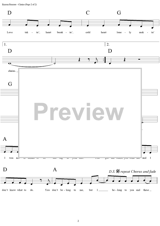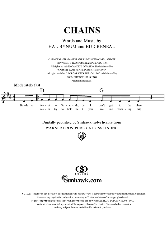 Digital Sheet Music for Chains by Patty Loveless, Hal Bynum, Bud Reneau scored for Lead Sheet; id:124050