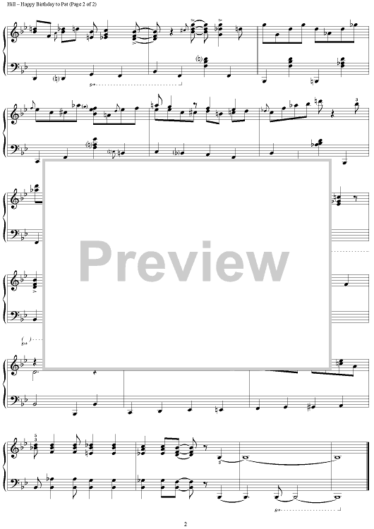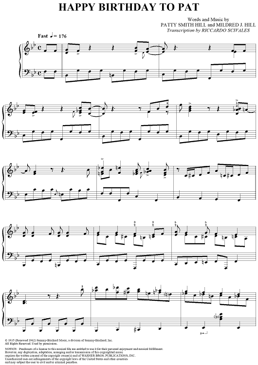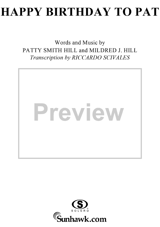 Digital Sheet Music for Happy Birthday to Pat by Mildred J. Hill, Cliff Jackson, Patty S. Hill scored for Piano Solo; id:266806
