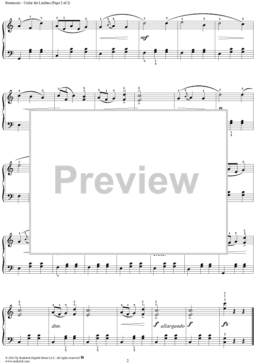 "Under the Lindens" Sheet Music by Paul Beaumont