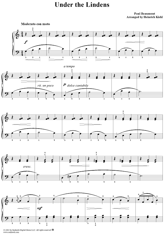 Digital Sheet Music for Under the Lindens by Heinrich Kiehl, Paul Beaumont scored for Piano Solo; id:294719