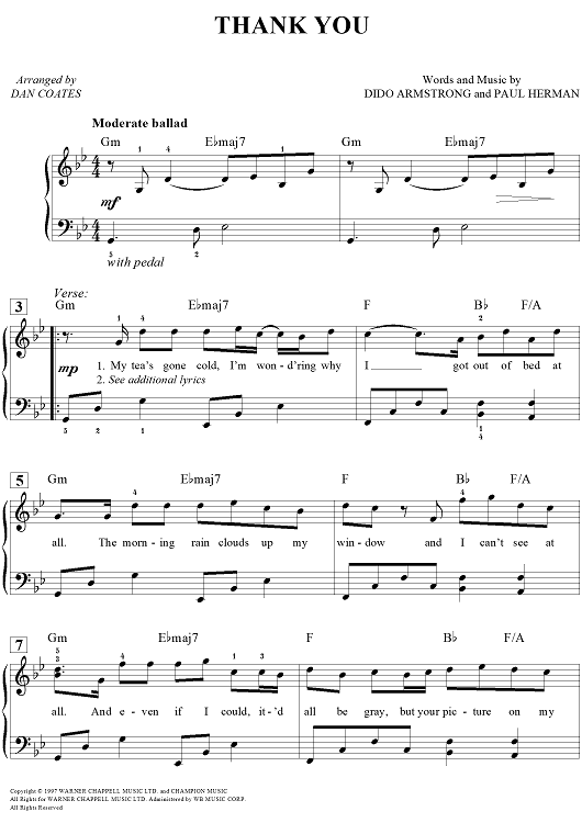 Digital Sheet Music for Thank You by Dan Coates, Dido Armstrong, Paul Herman scored for Easy Piano/Vocal/Chords; id:457847