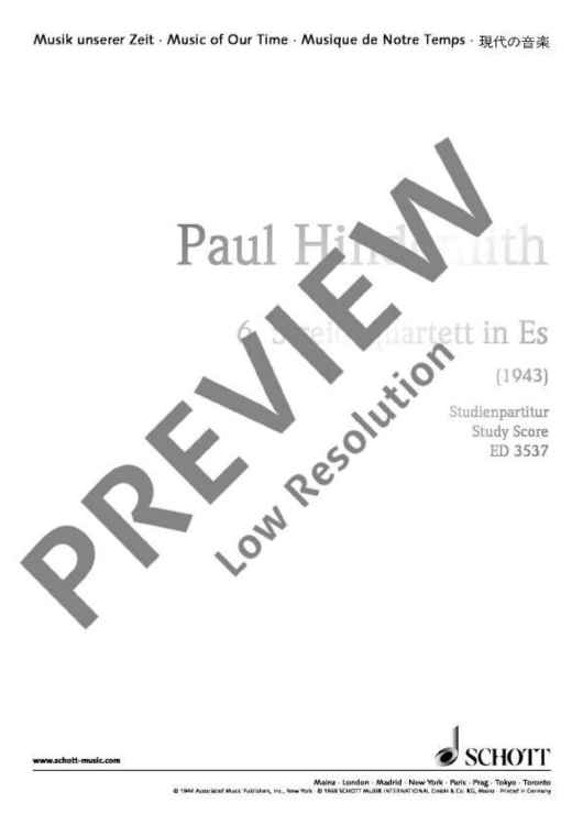 Digital Sheet Music for 6th String Quartet in E flat - Full Score by Paul Hindemith scored for String Quartet; id:472865