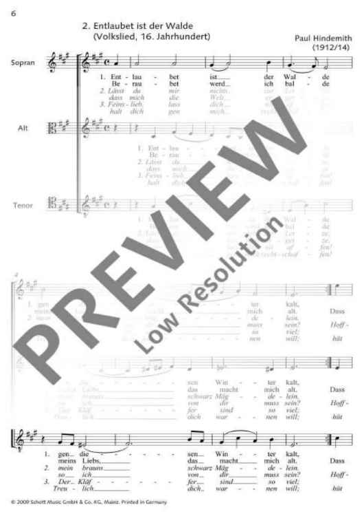"Drei Volkslieder - Choral Score" Sheet Music by Paul Hindemith
