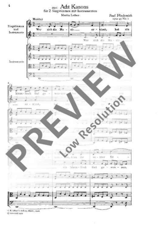 Digital Sheet Music for Lügenlied / Wer sich die Musik erkiest - Score by Paul Hindemith scored for Mixed Choir (SATB) and Instruments (Optional); id:479497