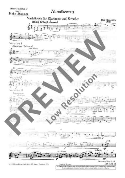 Digital Sheet Music for Plöner Musiktag - High String Part by Paul Hindemith scored for Clarinet and Strings; id:472468
