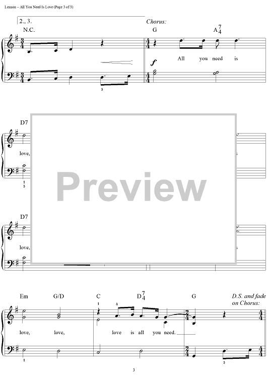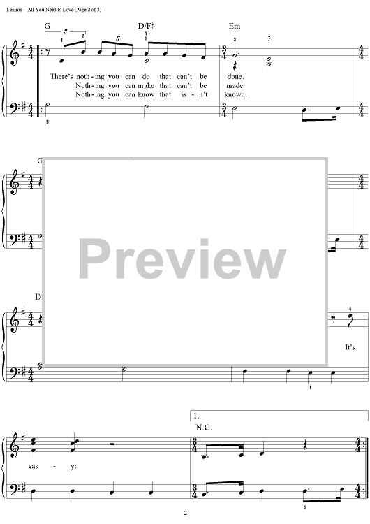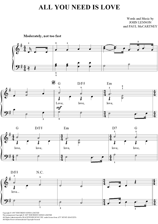 Digital Sheet Music for All You Need Is Love by Paul McCartney, The Beatles, John Lennon scored for Easy Piano/Vocal/Chords; id:448102