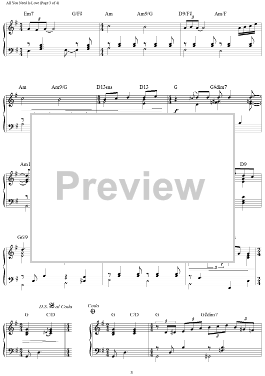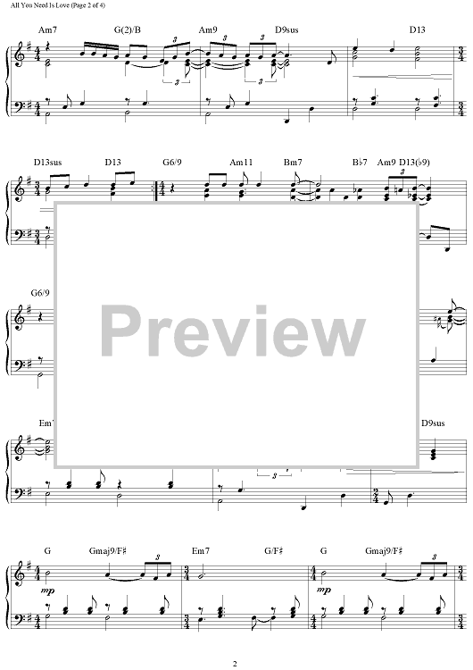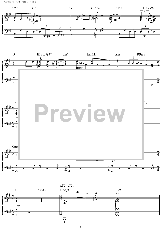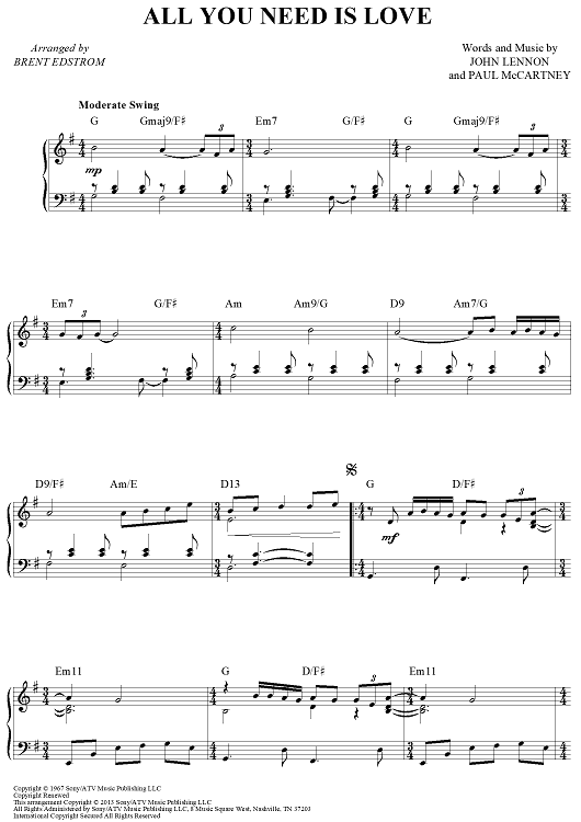 Digital Sheet Music for All You Need Is Love by Paul McCartney, The Beatles, John Lennon, Brent Edstrom scored for Piano Solo; id:460205