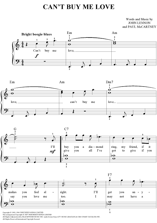 Digital Sheet Music for Can't Buy Me Love by Paul McCartney, The Beatles, John Lennon scored for Easy Piano/Vocal/Chords; id:448111