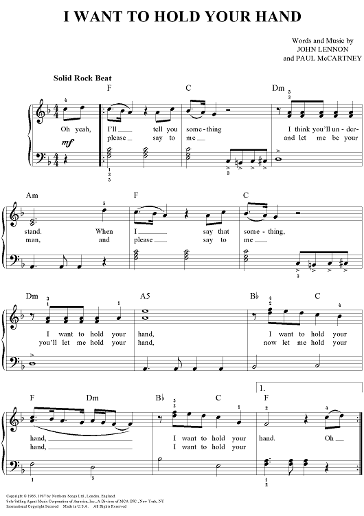 Digital Sheet Music for I Want To Hold Your Hand by Paul McCartney, The Beatles, John Lennon scored for Easy Piano/Vocal/Chords; id:448651