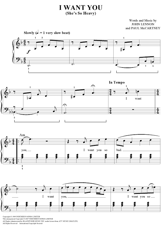 Digital Sheet Music for I Want You (She's So Heavy) by Paul McCartney, The Beatles, John Lennon scored for Easy Piano/Vocal/Chords; id:448652
