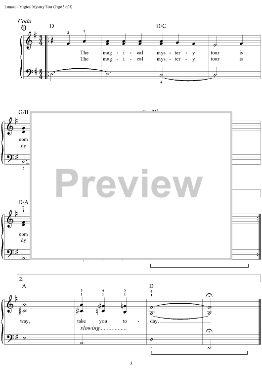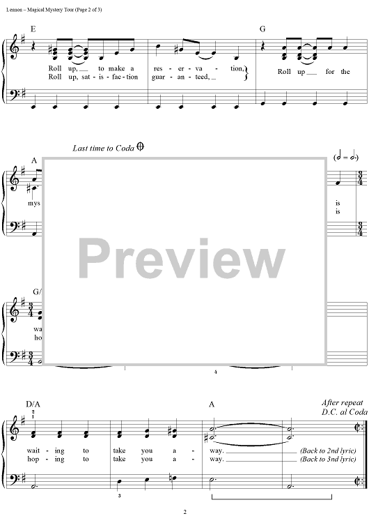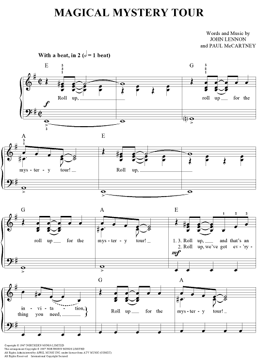 Digital Sheet Music for Magical Mystery Tour by Paul McCartney, The Beatles, John Lennon scored for Easy Piano/Vocal/Chords; id:448677