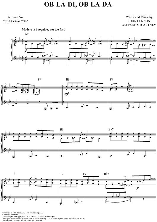 Digital Sheet Music for Ob-La-Di, Ob-La-Da by Paul McCartney, The Beatles, John Lennon, Brent Edstrom scored for Piano Solo; id:460021