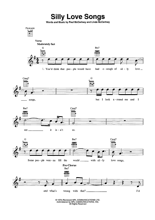 Digital Sheet Music for Silly Love Songs by Paul McCartney, Linda McCartney, Wings scored for Ukulele/Vocal; id:452263