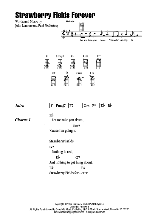 Digital Sheet Music for Strawberry Fields Forever by Paul McCartney, The Beatles, John Lennon scored for Ukulele/Vocal; id:466546