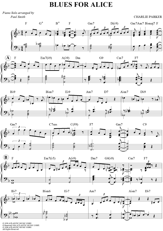 Digital Sheet Music for Blues For Alice by Charlie Parker, Paul Smith scored for Piano Solo; id:441553