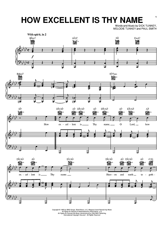 Digital Sheet Music for How Excellent Is Thy Name by Larnelle Harris, Dick Tunney, Melodie Tunney, Paul Smith scored for Piano/Vocal/Chords; id:398274