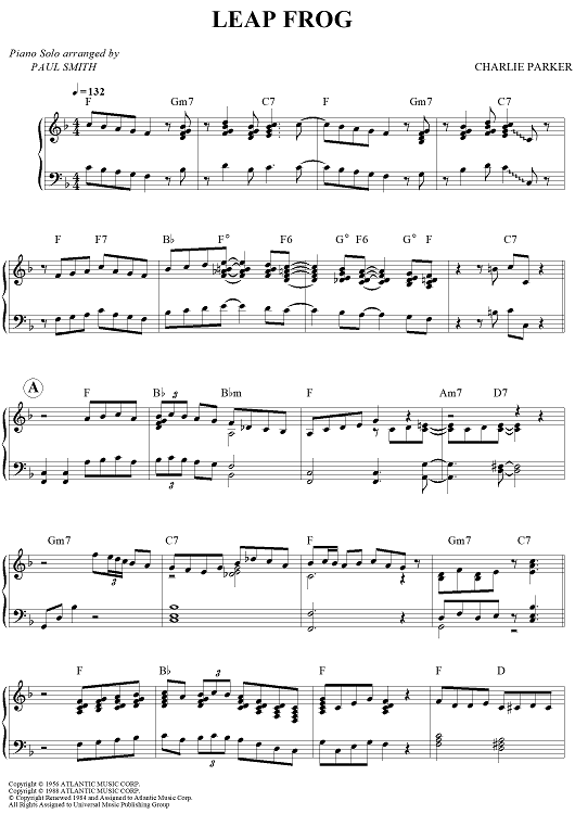 Digital Sheet Music for Leap Frog by Charlie Parker, Paul Smith scored for Piano Solo; id:442083