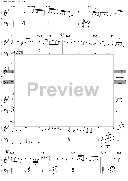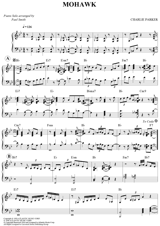 Digital Sheet Music for Mohawk by Charlie Parker, Paul Smith scored for Piano Solo; id:442061
