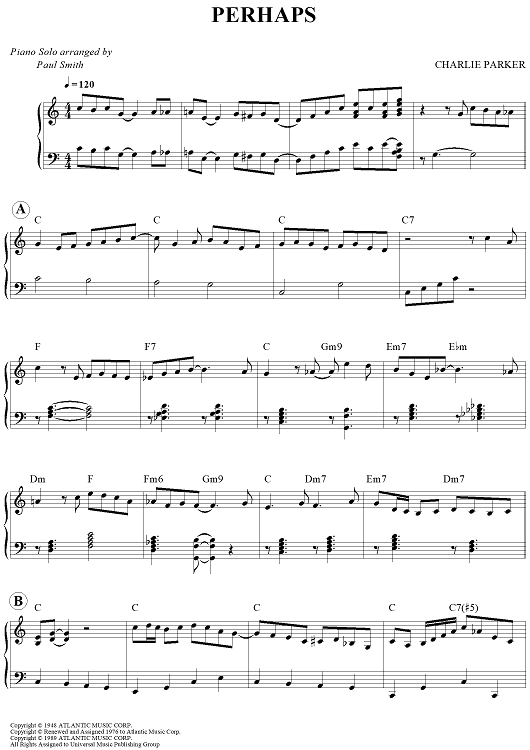 "Perhaps" Sheet Music by Charlie Parker