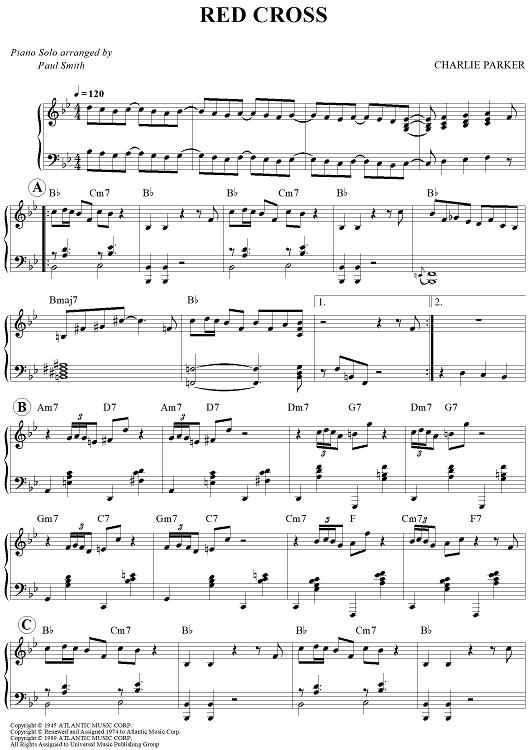 Digital Sheet Music for Red Cross by Charlie Parker, Paul Smith scored for Piano Solo; id:443682