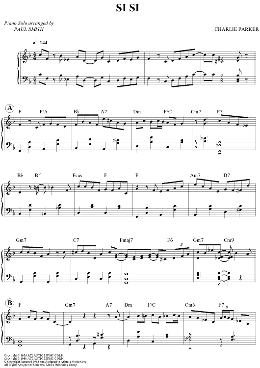 Digital Sheet Music for Si Si by Charlie Parker, Paul Smith scored for Piano Solo; id:442066