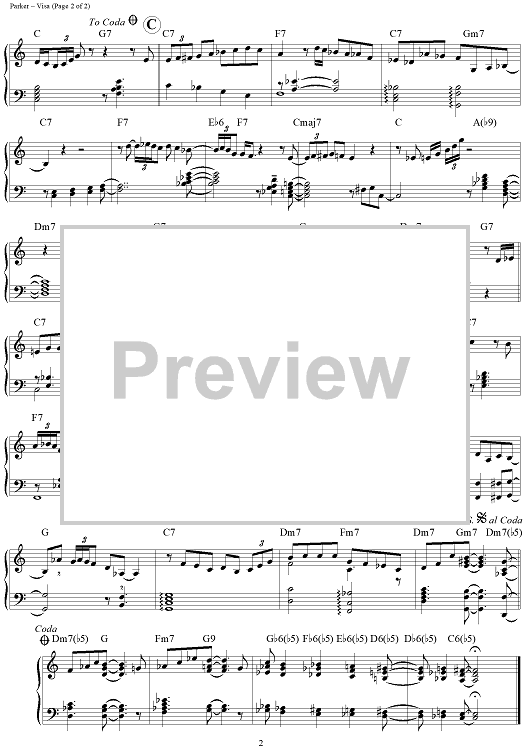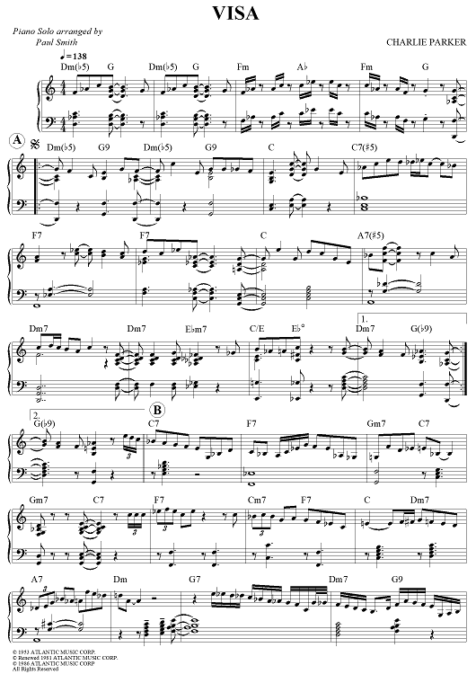 Digital Sheet Music for Visa by Charlie Parker, Paul Smith scored for Piano Solo; id:441776