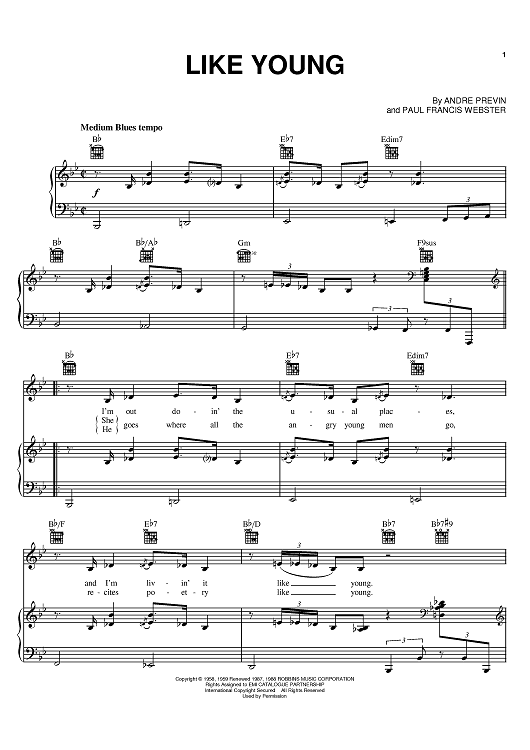 Digital Sheet Music for Like Young by Perry Como, Andre Previn, Paul Webster scored for Piano/Vocal/Chords; id:384230