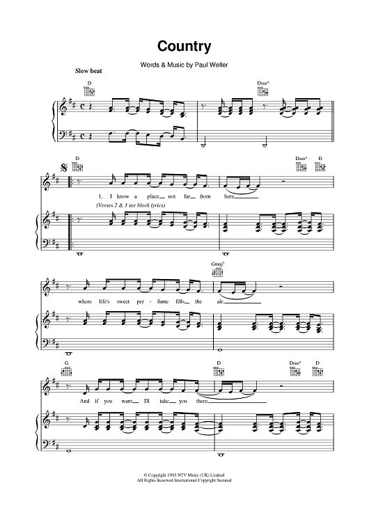 Digital Sheet Music for Country by Paul Weller scored for Piano/Vocal/Chords; id:375891