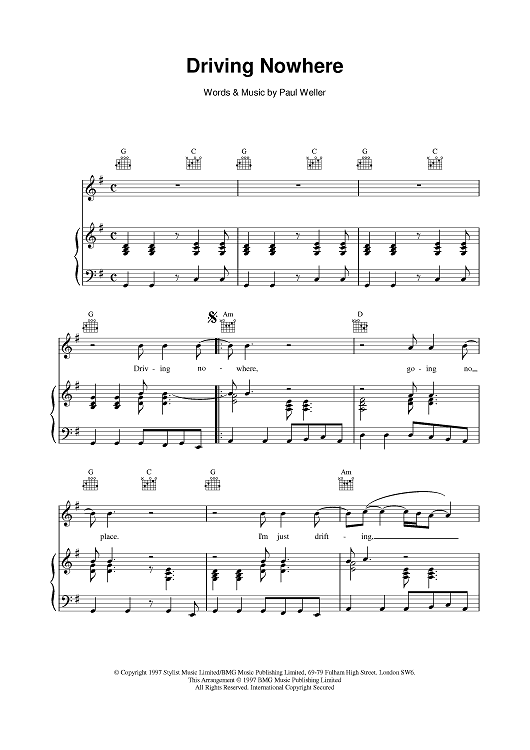 Digital Sheet Music for Driving Nowhere by Paul Weller scored for Piano/Vocal/Chords; id:376517