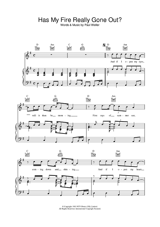 Digital Sheet Music for Has My Fire Really Gone Out by Paul Weller scored for Piano/Vocal/Chords; id:375890