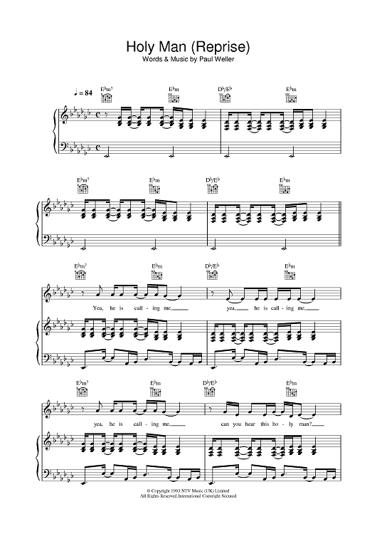 Digital Sheet Music for Holy Man (Reprise) by Paul Weller scored for Piano/Vocal/Chords; id:375895