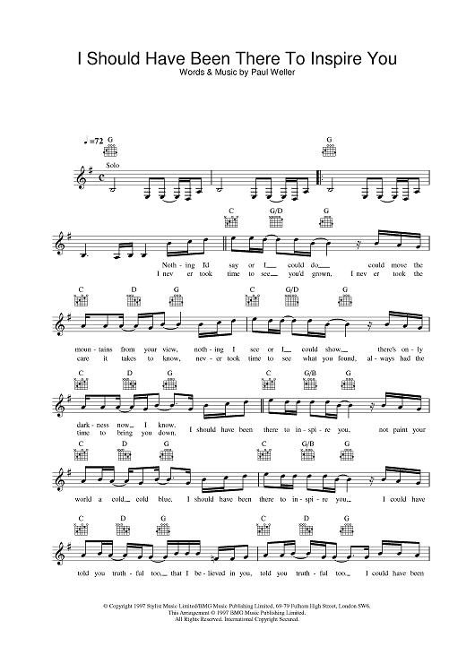 Digital Sheet Music for I Should Have Been There To Inspire You by Paul Weller scored for Lead Sheet; id:376518