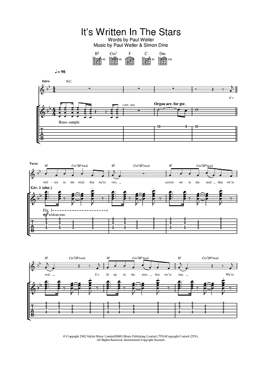 Digital Sheet Music for It's Written In The Stars by Paul Weller scored for Guitar Tab; id:377847