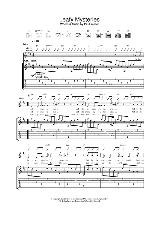 Digital Sheet Music for Leafy Mysteries by Paul Weller scored for Guitar Tab; id:377846