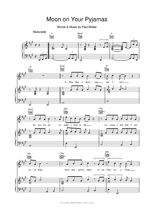 Digital Sheet Music for Moon on Your Pyjamas by Paul Weller scored for Piano/Vocal/Chords; id:375896