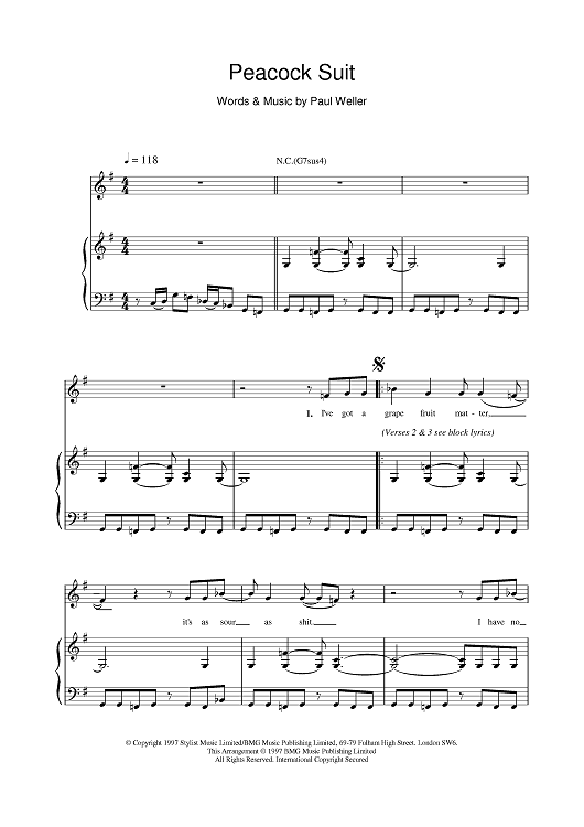 Digital Sheet Music for Peacock Suit by Paul Weller scored for Piano/Vocal/Chords; id:376288