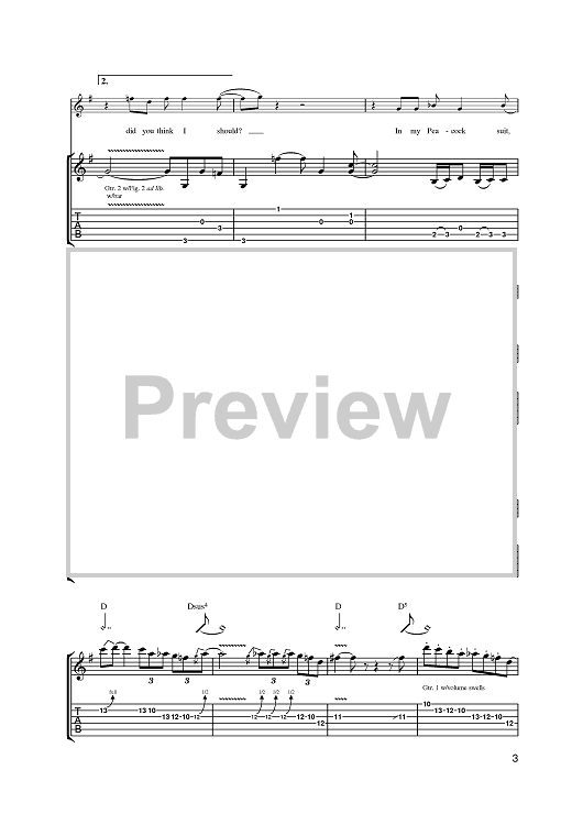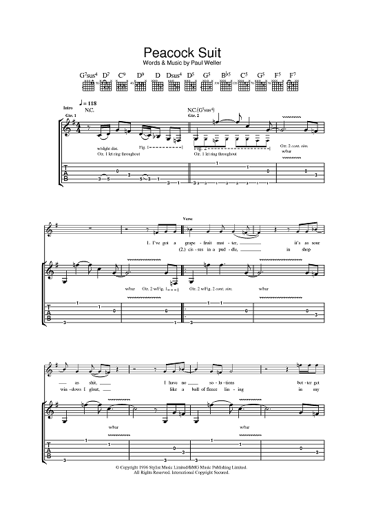 Digital Sheet Music for Peacock Suit by Paul Weller scored for Guitar Tab; id:396356