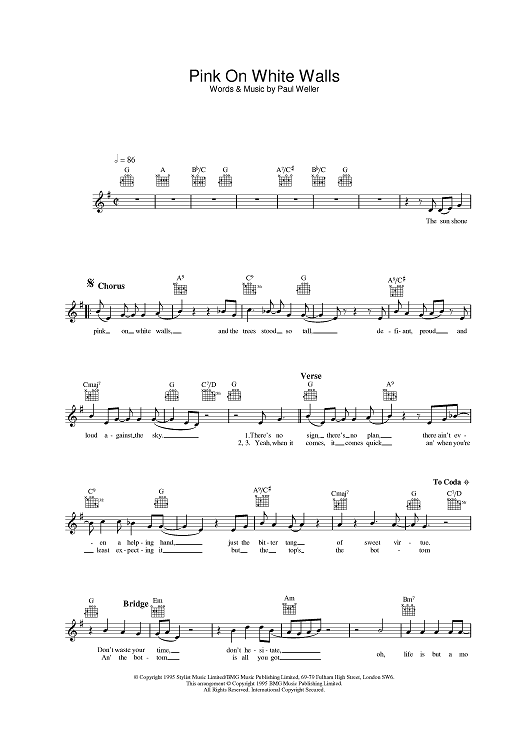 Digital Sheet Music for Pink On White Walls by Paul Weller scored for Lead Sheet; id:376006