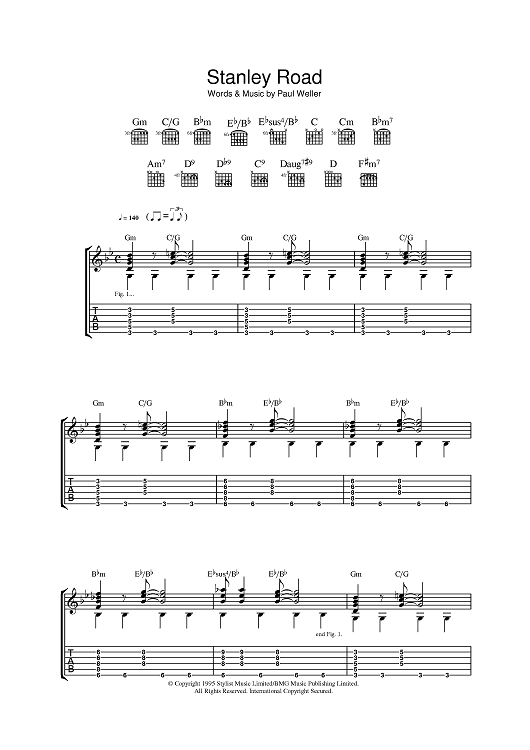 Digital Sheet Music for Stanley Road by Paul Weller scored for Guitar Tab; id:396354