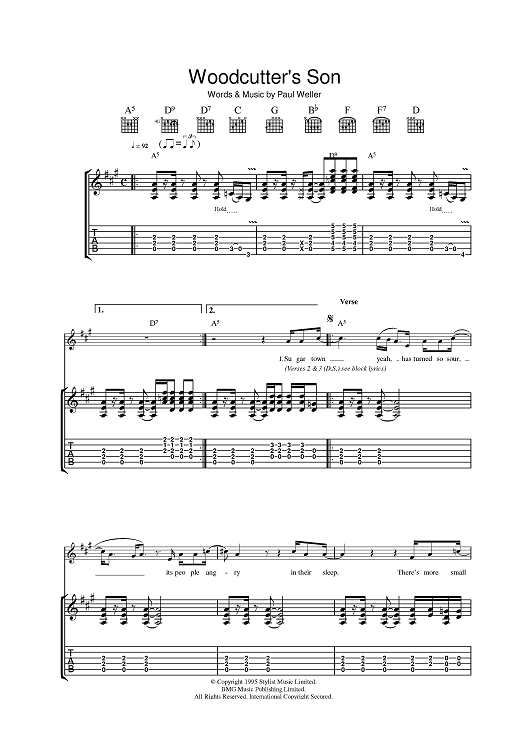 Digital Sheet Music for Woodcutter's Son by Paul Weller scored for Guitar Tab; id:396352