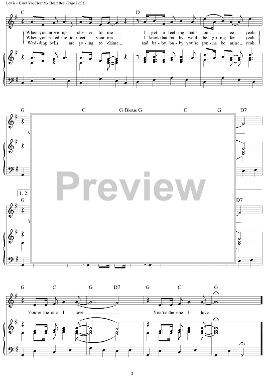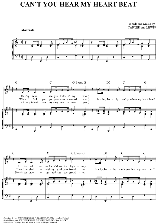 Digital Sheet Music for Can't You Hear My Heart Beat by John Carter, Herman's Hermits, Kenneth Lewis scored for Piano/Vocal/Chords; id:273484
