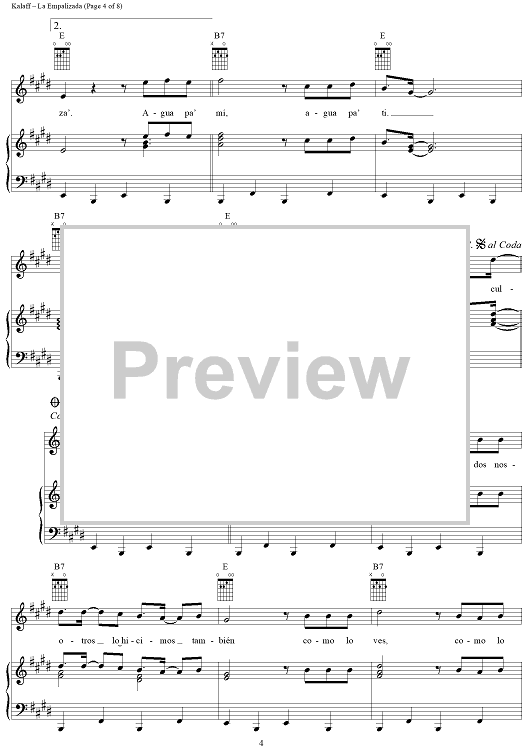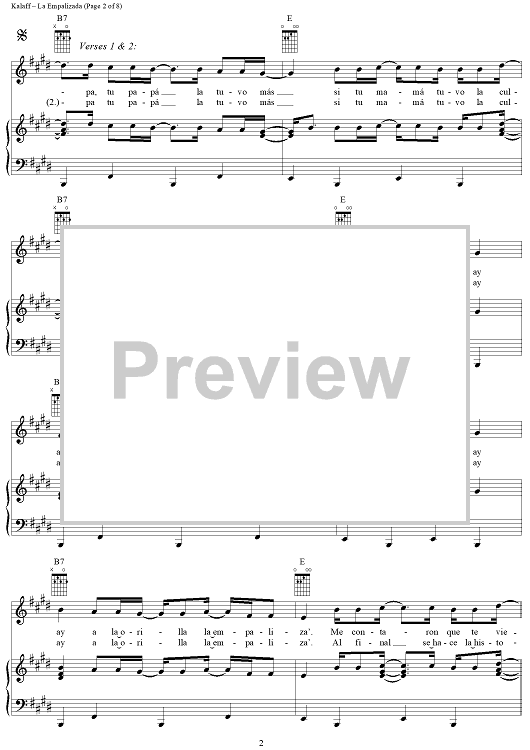 Digital Sheet Music for La Empalizada by Julio Iglesias, Estéfano, Luis Kalaff scored for Piano/Vocal/Chords; id:284427