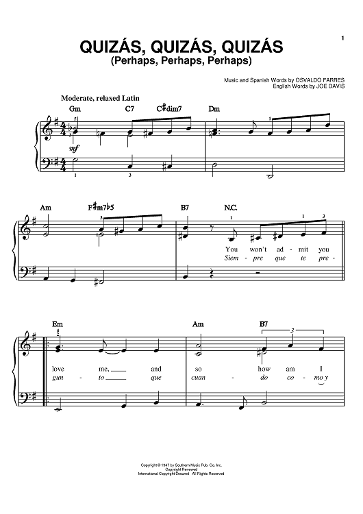 Digital Sheet Music for Quizas, Quizas, Quizas (Perhaps, Perhaps, Perhaps) by Joe Davis, Osvaldo Farres scored for Easy Piano; id:367677